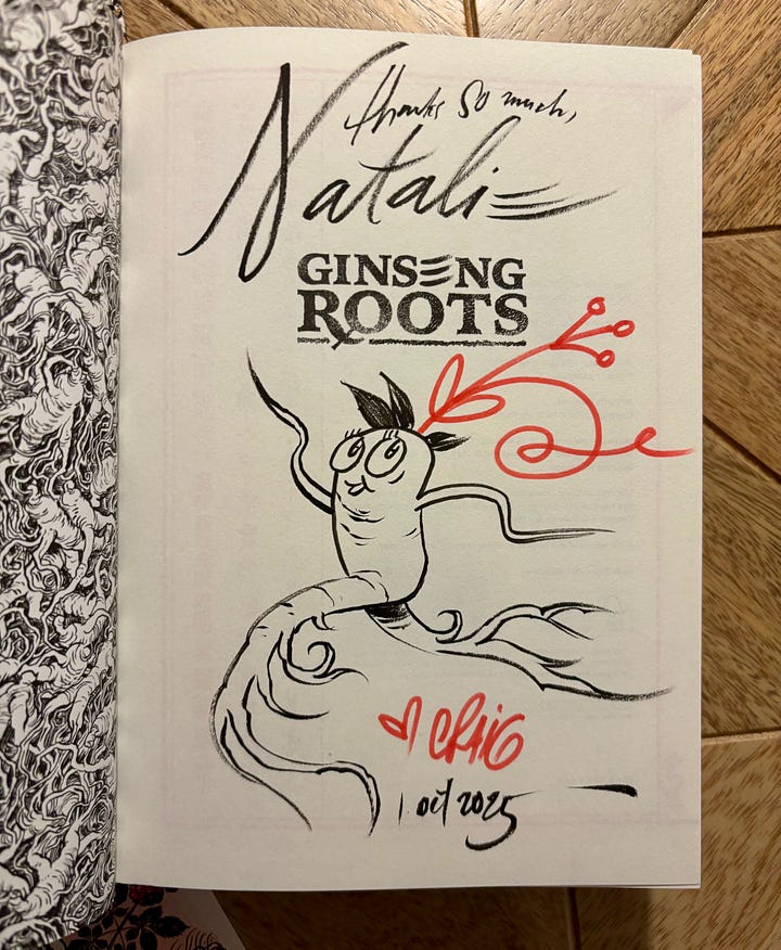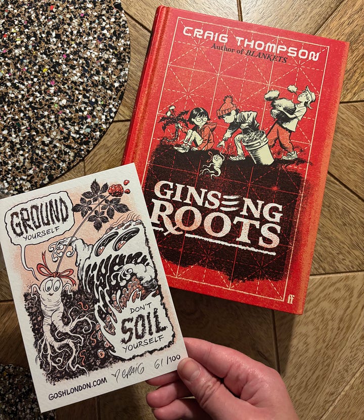 Oh! And I’m halfway through the new Craig Thompson book, Ginseng Roots. He was doing a signing at Gosh in London and he was so lovely to talk to.