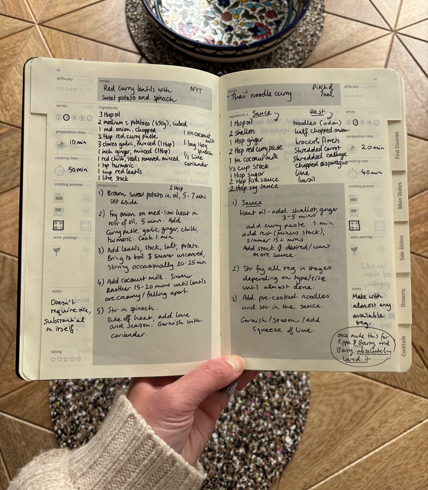 They’re not my original recipes, but they’re old favourites that I have copied into my Recipe Book. I still use The Internet to find new dishes, but if I’ve made something several times and I know it’s a keeper, I record it here.